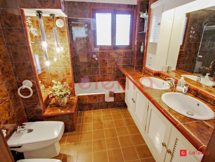 Diese Villa erstreckt sich über zwei Ebenen und ist mit Innen- und Außentreppen verbunden. Eintritt in die Villa in einen großen und modernen Wohnbereich mit TV-SAT-DVD-A/C und Essbereich und einer modernen vollausgestatteten Küche. Auf der gleichen Ebene befinden sich ein Doppelzimmer und ein Gäste-WC. Interne Stufen führen uns hinunter zu den anderen 3 Schlafzimmern: 1 Doppelzimmer mit einem modernen Duschbad, 1 Schlafzimmer mit 2 Einzelbetten mit einem kleinen Duschbad und 1 Doppelzimmer mit einem Bad en-suite.