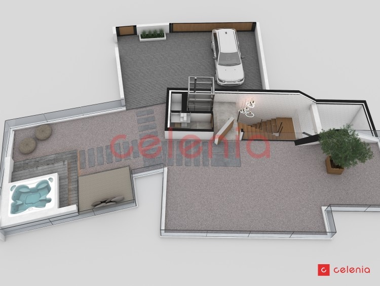 -Zugangsetage: wo es einen Parkplatz für 2 Autos gibt. Auf dieser Etage befindet sich auch ein Chillout-Bereich mit Jacuzzi mit fantastischem Meerblick und der Zugangsbereich zum Haus.