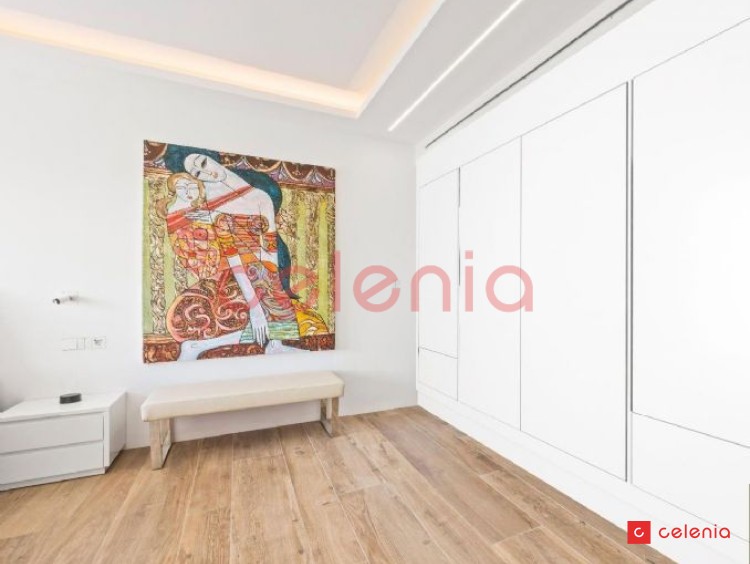 Der ultimative Luxus erwartet Sie auf der dritten Etage: ein großzügiger, 80 m² großer, offener Wohn-, Ess- und Küchenbereich. Die exquisit gestaltete Porcelanosa-Küche fügt sich nahtlos in das sonnendurchflutete Wohnzimmer ein und bietet direkten Zugang zum Hauptschlafzimmer und der 150 m² großen Terrasse mit Infinity-Pool. Eine eigene Terrasse und eine Treppe von der Küche führen zur Dachterrasse mit Solarium und üppigem Garten.