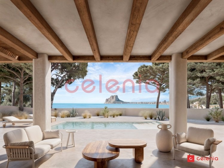 Villenbauprojekt im ibizenkischen Stil mit Meerblick in Moraira (Costa Blanca, Alicante). Es liegt auf einem flaches Grundstück mit fantastischem Blick auf das Mittelmeer und den Peñón de Ifach und in einer privilegierten und ruhigen Wohngegend. Es liegt nur eine kurze Autofahrt vom Zentrum von Moraira, seinen Stränden, Restaurants, Bars, Supermärkten und Geschäften entfernt.